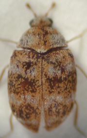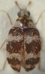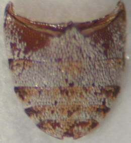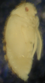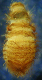 Fig.: From the left to the right: habitus of the female, habitus of the male, abdomen, antenna and genitalia of the male, larva and pupa